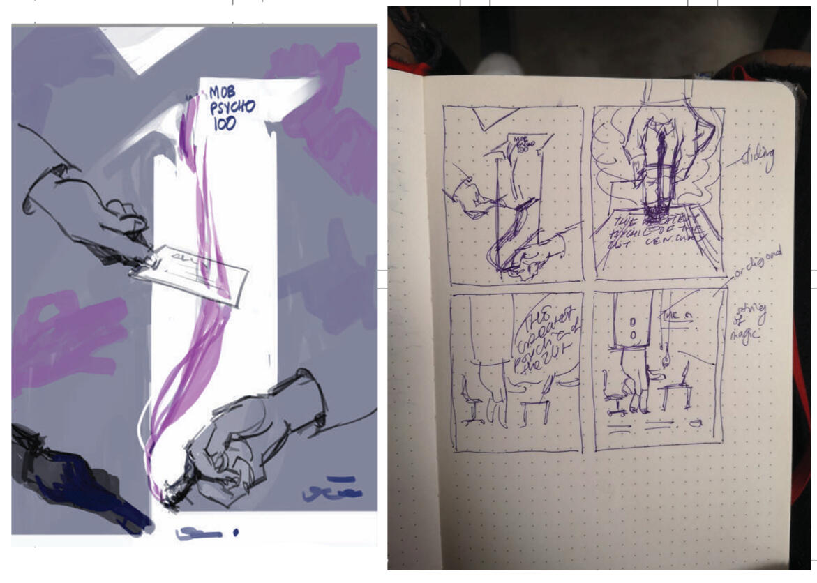 How can we use symbols to effectively communicate an abstract concept?Referencing my favourite anime series Mob Pyscho 100, Pretend uses hand gestures to reveal the essence of the show's main character - a charismatic con man named Reigen pretending to be a psychic.