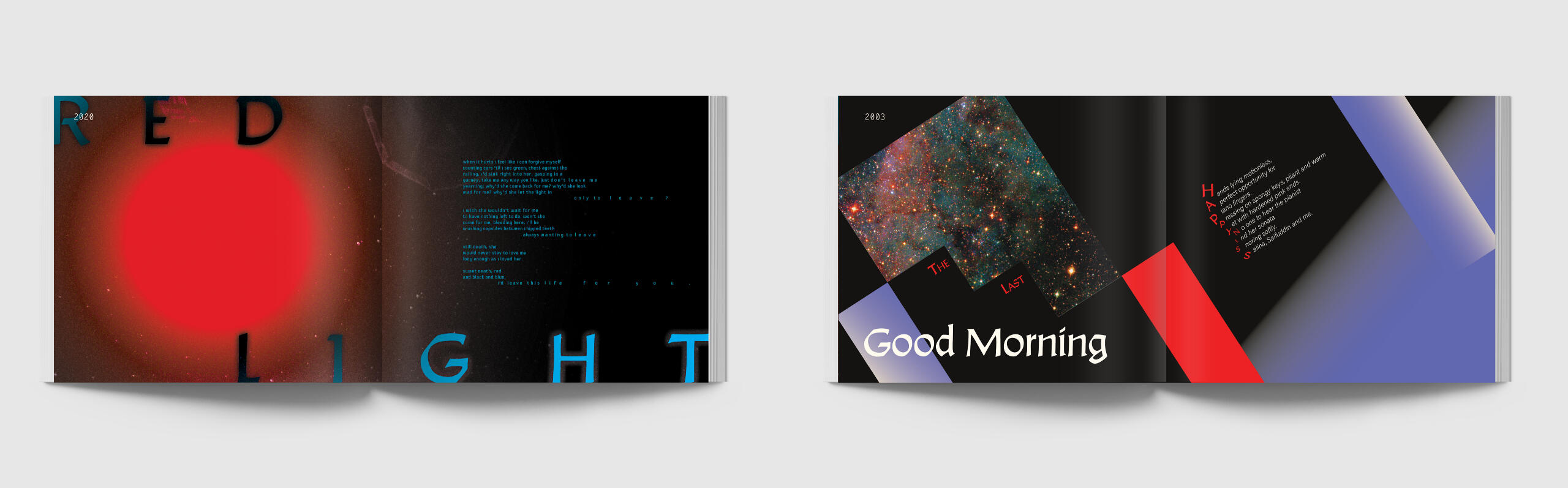 My love for writing poetry and appreciation for astronomy, combined and "fried" into a typographic book, chronologizing the highs and lows of my life.