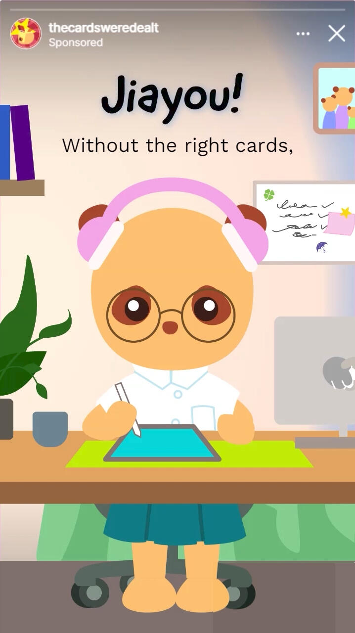 I'm a Visual Communications undergrad from Nanyang Technological University (School of Art, Design and Media). I enjoy improving the user experience through advertising, typography, and illustration — all of which grounded in storytelling and strategy.