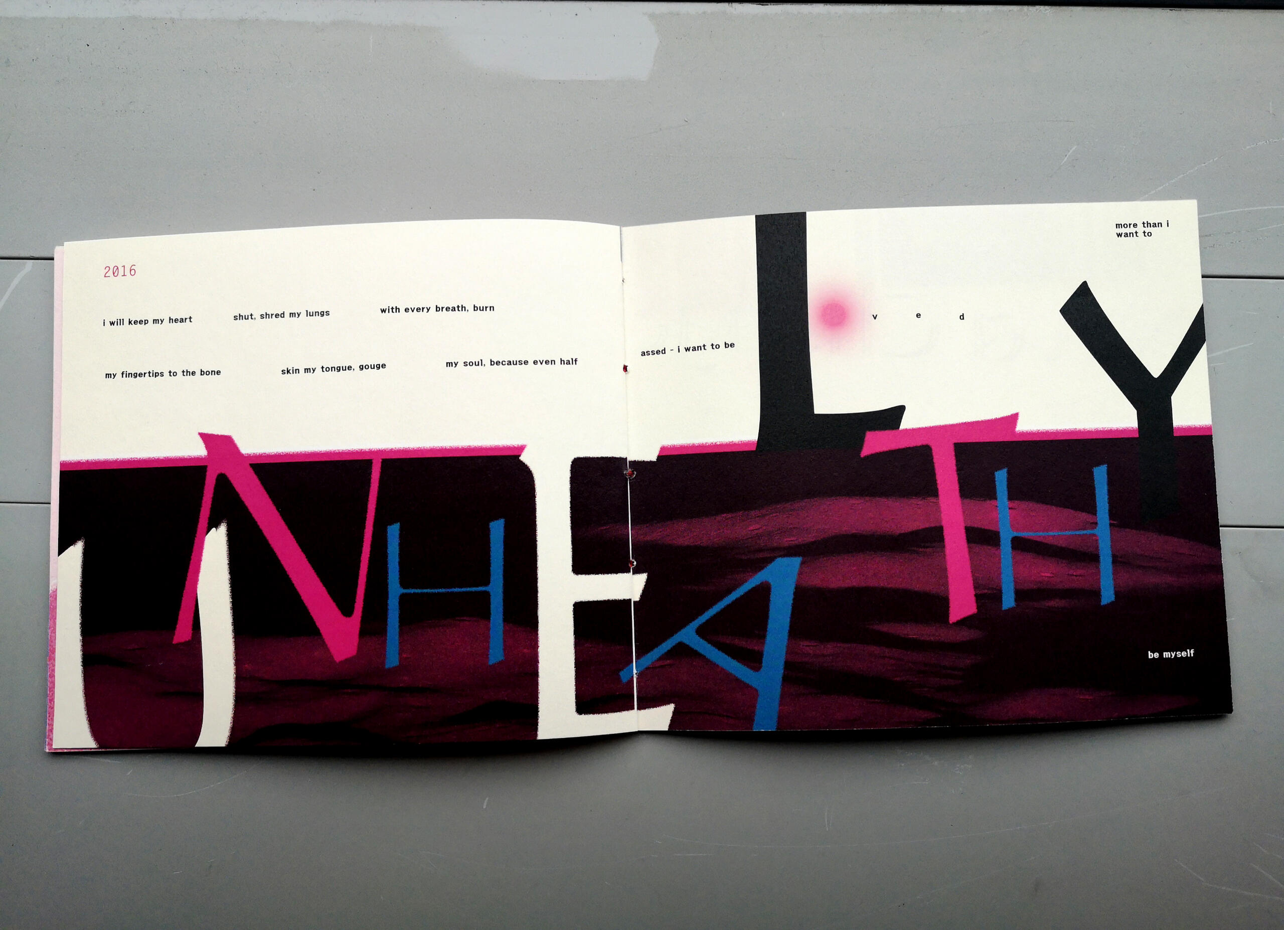 My love for writing poetry and appreciation for astronomy, combined and "fried" into a typographic book, chronologizing the highs and lows of my life.