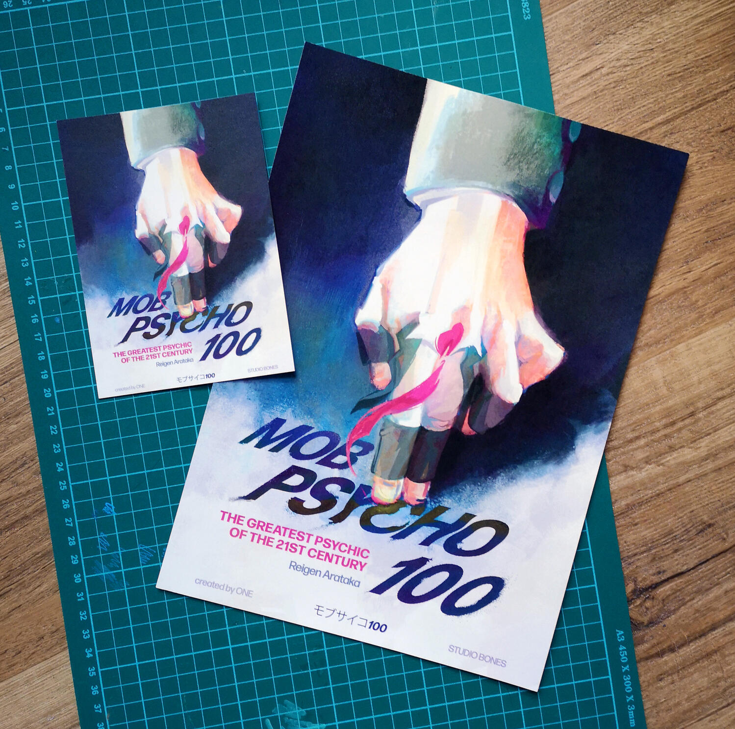 As accompaniment to the poster, I designed an interactive pamphlet that draws inspiration from the somewhat primitive fortune telling ways of our childhoods, serving as a nod to how elementary Reigen's skills truly are.